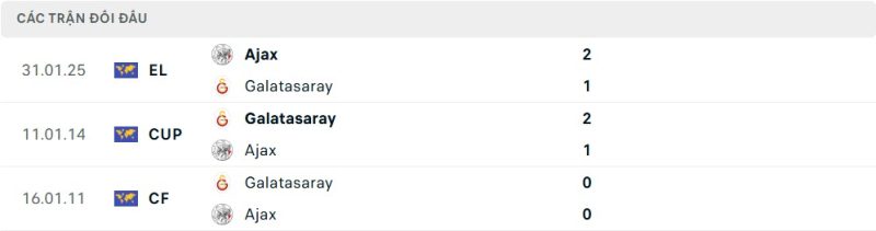 Thống kê phong độ gần đây Ajax vs Galatasaray