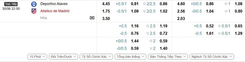 Bảng Tỷ lệ kèo bóng đá Alavés vs Atlético Madrid