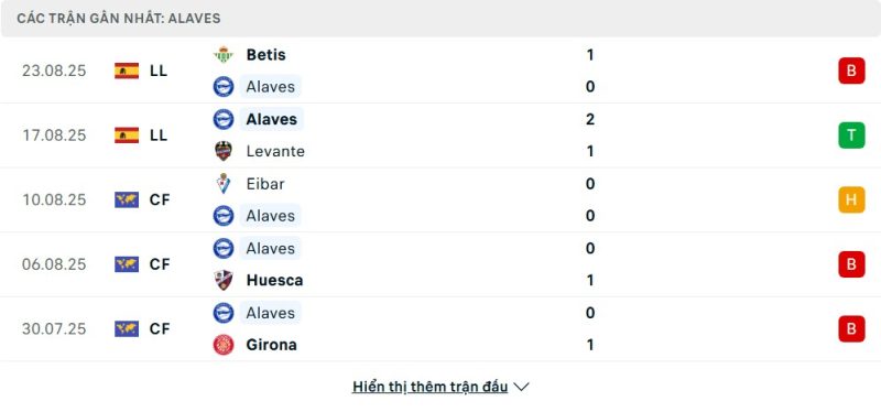 5 trận gần nhất của Alavés: L-W-D-L-L
