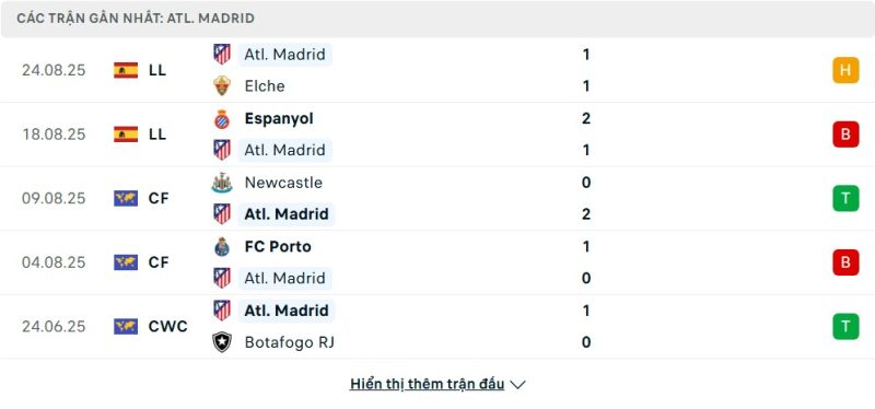 Bên kia chiến tuyến, Atlético Madrid lại đang có một sự khởi đầu mùa giải mới đáng thất vọng. Đoàn quân của HLV Diego Simeone hiện chỉ có được 1 điểm và đang tạm đứng ở vị trí thứ 13. Họ đã phải nhận thất bại 1-2 trước Espanyol trong ngày ra quân, và gần đây nhất là trận hòa 1-1 ngay trên sân nhà trước Elche. Kết quả này rõ ràng chưa đáp ứng được kỳ vọng của người hâm mộ. Dù đã có những chiến thắng ở các giải đấu giao hữu và FIFA Club World Cup trước đó, Atlético Madrid đang cho thấy sự chệch choạc khi bước vào La Liga.