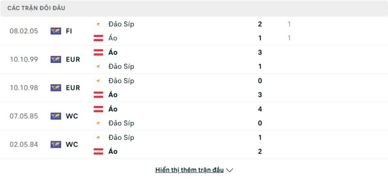 Thống kê phong độ gần đây Áo vs Đảo Síp
