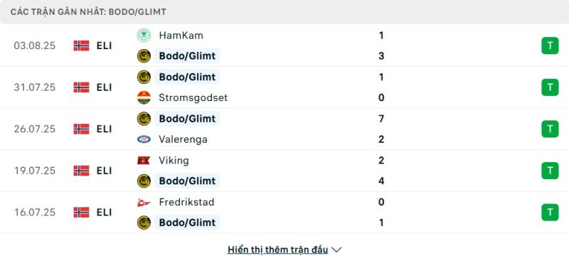 Thống kê phong độ gần đây Bodø/Glimt vs Tromsø
