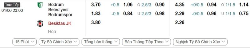 Bảng Tỷ lệ kèo bóng đá Bodrum FK vs Beşiktaş
