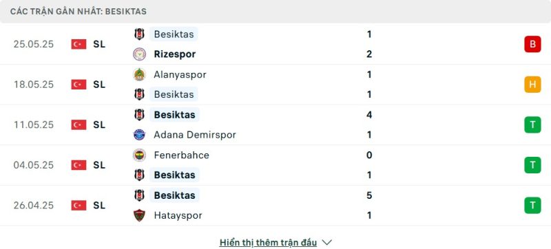 5 trận gần nhất của Beşiktaş: L-D-W-W-W