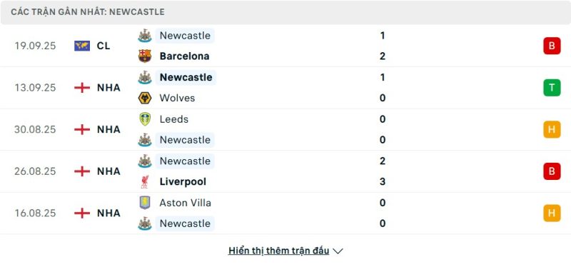 - Phong độ của Newcastle United