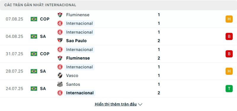 Bên kia chiến tuyến, Internacional cũng trải qua giai đoạn không mấy suôn sẻ khi không thắng 4 trận gần nhất. Tuy nhiên, dấu hiệu khởi sắc bắt đầu trở lại khi họ cầm hòa Fluminense 1-1 ở cả hai lượt trận cúp quốc gia và thắng Santos 2-1 ngay trên sân khách. Mặc dù thua sát nút trước Sao Paulo 1-2, lối chơi có phần chắc chắn hơn của Internacional cho thấy họ đã bắt đầu tìm lại được nhịp độ ổn định trong giai đoạn khốc liệt của mùa giải.
