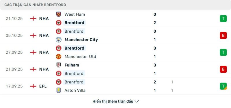 Brentford đang có một vị trí tương đối an toàn ở giữa bảng xếp hạng, cụ thể là thứ 13 sau 8 vòng đấu tại Premier League 2025/26. Với 10 điểm, “Bầy ong” đang thể hiện một phong độ khá thất thường nhưng cũng đầy nguy hiểm. Họ có thể để thua 0-1 trước Man City hay 1-3 trước Fulham, nhưng lại bất ngờ quật ngã gã khổng lồ Man Utd với tỷ số 3-1 thuyết phục và gần nhất là chiến thắng 2-0 trước West Ham. Xen kẽ vào đó, họ cũng có trận hòa 2-2 kịch tính với Chelsea. Đội quân của HLV Keith Andrews cho thấy họ là một đối thủ không thể xem thường.