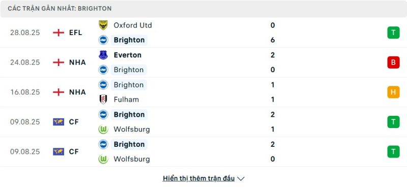 - Phong độ của Brighton & Hove Albion