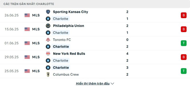 - Phong độ của Charlotte FC