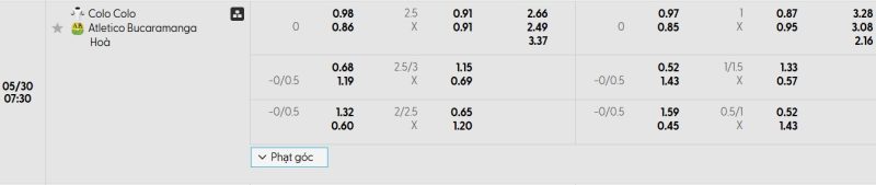 Bảng Tỷ lệ kèo bóng đá Colo Colo vs Atlético Bucaramanga