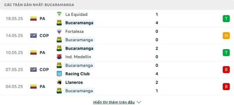 • Phong độ của Atlético Bucaramanga