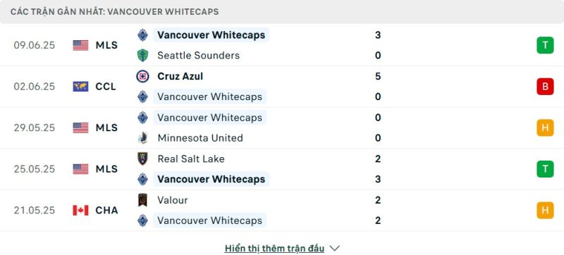 - Phong độ của Vancouver Whitecaps