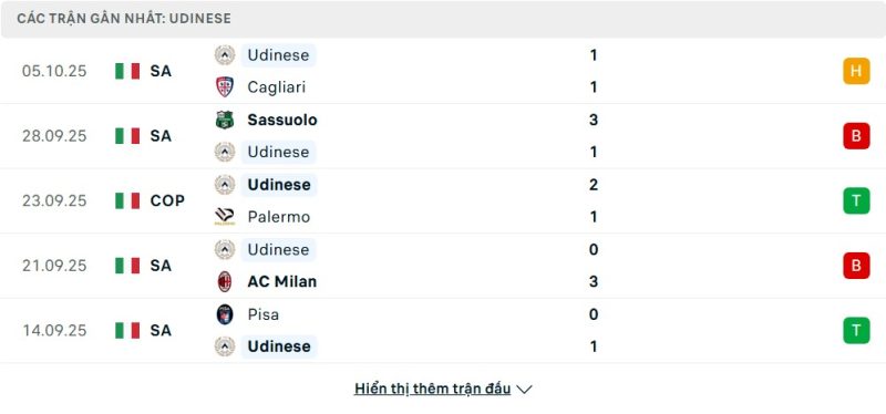 Udinese lại đang thể hiện một bộ mặt khá thất thường. Họ hiện đang xếp thứ 12 với 8 điểm, ngay phía sau Cremonese. Phong độ gần đây của “Ngựa vằn nhỏ” là một chuỗi trận thắng thua đan xen. Họ có thể giành những chiến thắng thuyết phục trước Pisa hay Palermo, nhưng cũng dễ dàng để thua trước các đối thủ được đánh giá cao hơn như Sassuolo hay AC Milan. Sự thiếu ổn định, đặc biệt là trong các chuyến làm khách, đang là bài toán nan giải đối với HLV Kosta Runjaic và các học trò.