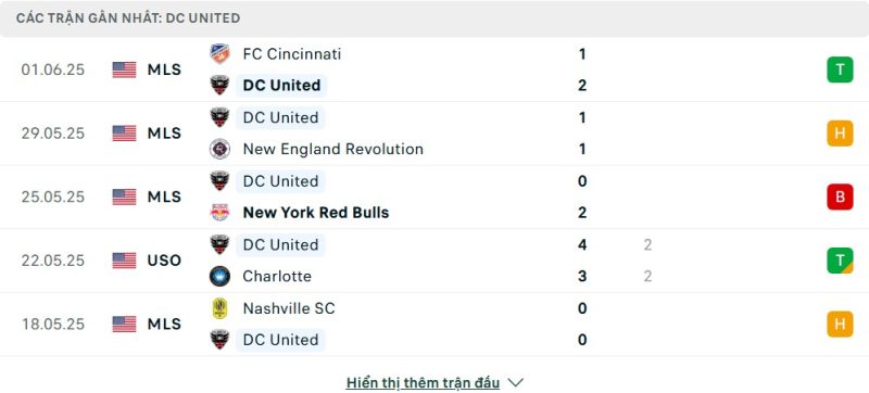 Thống kê phong độ gần đây DC United vs Chicago Fire