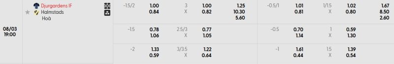 Bảng Tỷ lệ kèo bóng đá Djurgårdens IF vs Halmstads BK