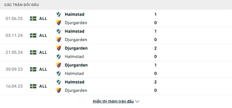 Thành tích đối đầu của Djurgårdens IF vs Halmstads BK
