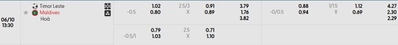 Bảng Tỷ lệ kèo bóng đá Đông Timor vs Maldives