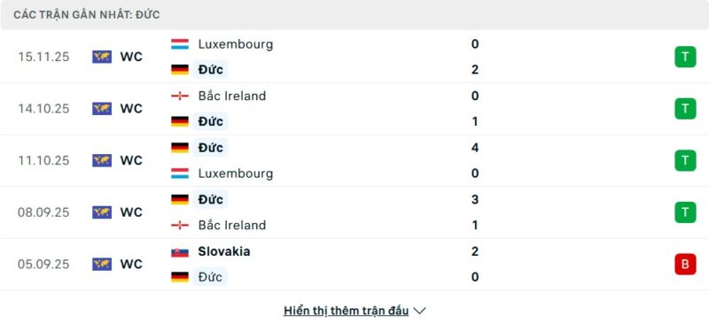 5 trận gần nhất của Đức: W-W-W-W-L