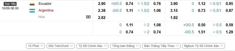 - Kèo tỷ số bóng đá hiệp 1: Ecuador 0-1 Argentina