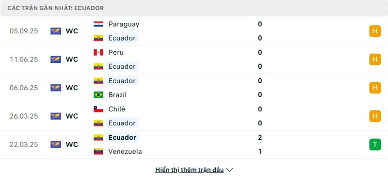 Ecuador đang tạm chiếm vị trí thứ tư, một trong những suất vé trực tiếp đến World Cup. Phong độ của họ thời gian qua được xây dựng trên một hàng phòng ngự cực kỳ vững chắc. “La Tri” đã tạo nên một chuỗi trận hòa không bàn thắng ấn tượng trước các đối thủ sừng sỏ như Brazil, Uruguay, Chile và Peru. Những kết quả này, cộng với các chiến thắng quan trọng trước Venezuela 2-1 và Colombia 1-0, đã giúp họ nắm giữ lợi thế.