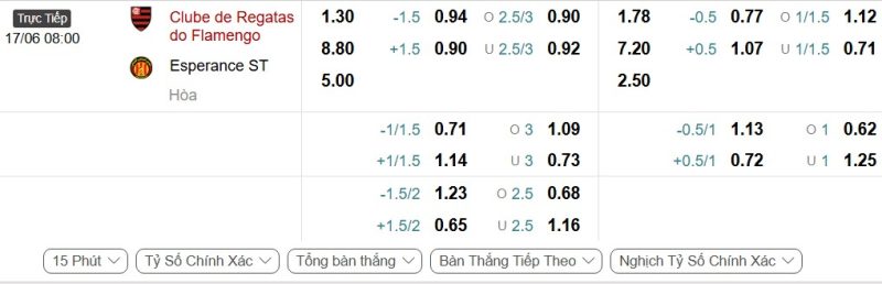 Bảng Tỷ lệ kèo bóng đá Flamengo vs Espérance Tunis