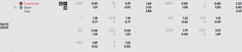 Bảng Tỷ lệ kèo bóng đá Fluminense vs Ulsan HD