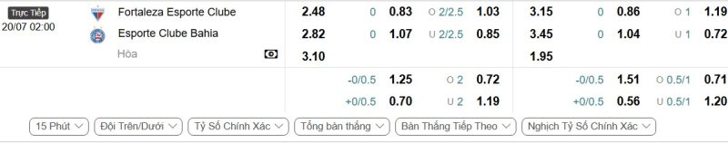 Bảng Tỷ lệ kèo bóng đá Fortaleza vs Bahia