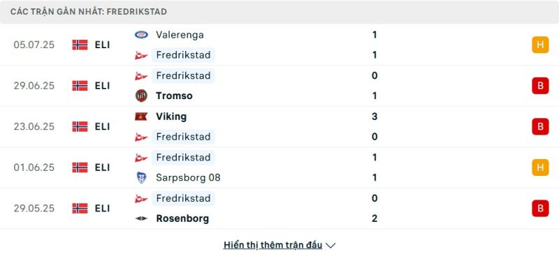 5 trận gần nhất của Fredrikstad: D-L-L-D-L