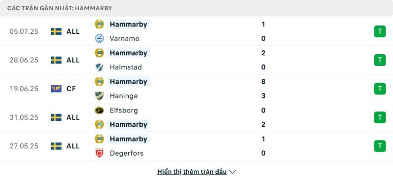 5 trận gần nhất của Hammarby IF: W-W-W-W-W