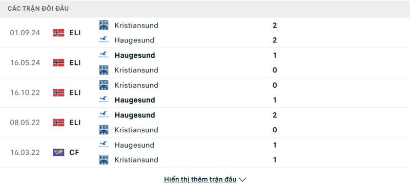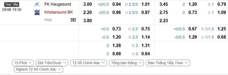 Bảng Tỷ lệ kèo bóng đá Haugesund vs Kristiansund