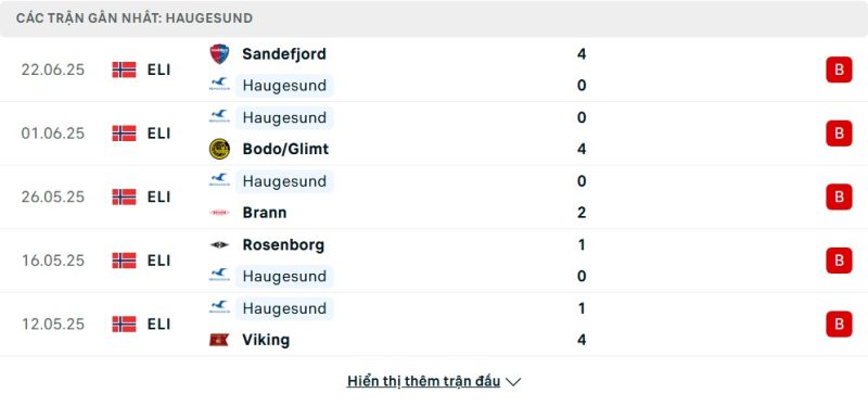 5 trận gần nhất của Haugesund: L-L-L-L-L