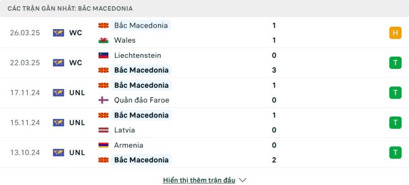 5 trận gần nhất của Bắc Macedonia: D-W-W-W-W