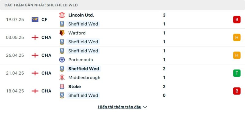 - Phong độ của Sheffield Wednesday