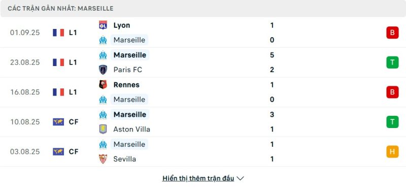 Marseille khởi đầu mùa giải mới với phong độ khá chênh vênh, khi chỉ thắng một trong ba vòng đấu đầu tiên. Chiến thắng đậm trước Paris phần nào khẳng định sức mạnh hàng công, nhưng hai thất bại trước Rennes và Lyon đã khiến họ rơi xuống vị trí thứ 10 trên bảng xếp hạng. Đội bóng thành phố cảng vẫn duy trì khả năng ghi bàn tốt, song sự thiếu ổn định trong phòng ngự đang khiến họ đánh mất nhiều điểm số quan trọng. Dẫu vậy, với lực lượng có chiều sâu và kinh nghiệm thi đấu châu Âu, Marseille vẫn được đánh giá là ứng cử viên đáng chú ý ở mùa giải năm nay.