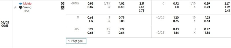 Bảng Tỷ lệ kèo bóng đá Molde FK vs Viking FK