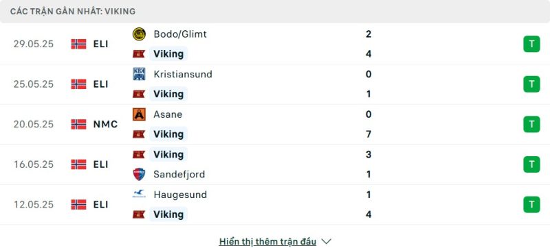5 trận gần nhất của Viking FK: W-W-W-W-W