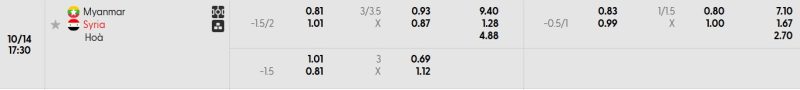 Bảng Tỷ lệ kèo bóng đá Myanmar vs Syria