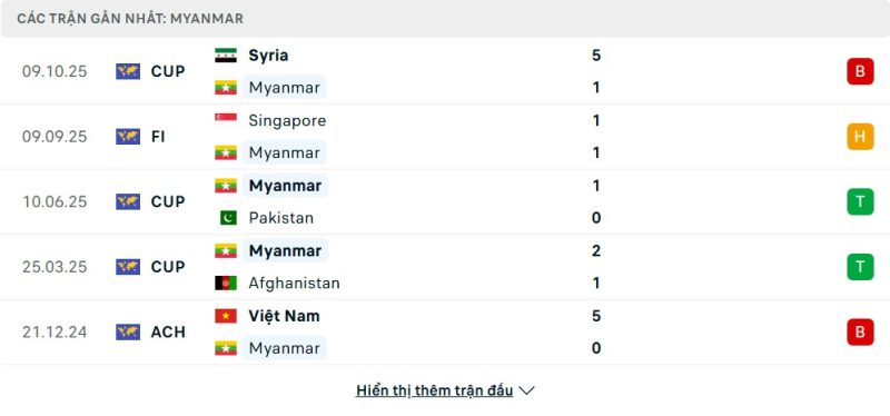 Thống kê phong độ gần đây Myanmar vs Syria