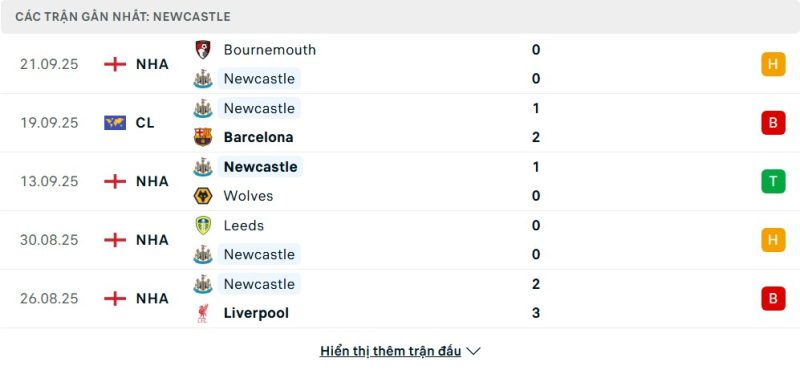 Newcastle United khởi đầu mùa giải chưa thật sự thuyết phục khi mới có 1 chiến thắng, 3 trận hòa và 1 thất bại sau 5 vòng đấu. Với 6 điểm, họ đang đứng ở nửa dưới bảng xếp hạng. Điểm nhấn đáng kể là chiến thắng trước Wolverhampton Wanderers và kết quả hòa trên sân của Bournemouth, nhưng thất bại trước Liverpool ngay tại St. James’ Park vẫn để lại nhiều lo lắng. Ở Champions League, Newcastle United cũng vừa để thua Barcelona trong thế trận khá giằng co. Những kết quả này cho thấy đoàn quân của Eddie Howe vẫn cần thêm sự bùng nổ nếu muốn vươn lên nhóm dẫn đầu.