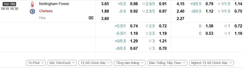 Bảng Tỷ lệ kèo bóng đá Nottingham Forest vs Chelsea