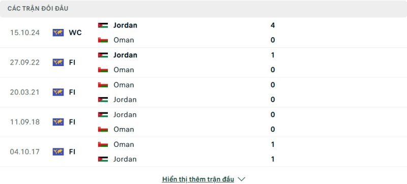 Trong 9 cuộc đối đầu gần nhất giữa hai đội tuyển, có đến 8 trận kết thúc với không quá 2 bàn thắng được ghi. Điều đó cho thấy mỗi lần chạm trán giữa Oman và Jordan đều rất chặt chẽ và thiên về đấu trí chiến thuật hơn là những màn đôi công mãn nhãn. Hai đội hiểu rõ nhau, và điều đó góp phần khiến các trận đối đầu trực tiếp trở nên khó lường, ít khi có nhiều bàn thắng.