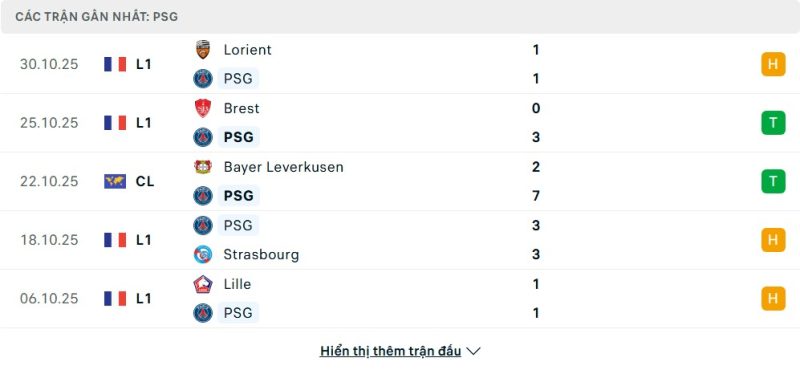 Paris Saint-Germain đang cho thấy vị thế của nhà lãnh đạo khi chiếm giữ ngôi đầu bảng Ligue 1 sau 10 vòng đấu. Với 21 điểm, họ duy trì thành tích ấn tượng gồm 6 thắng, 3 hòa và chỉ 1 thất bại, cùng hiệu số dương 11. Phong độ gần đây của đội bóng thủ đô khá ổn định với chuỗi 5 trận bất bại tại giải quốc nội, trong đó có 2 chiến thắng và 3 trận hòa. Không chỉ vậy, tại đấu trường Champions League, PSG vừa có chiến thắng vang dội 7-2 trước Leverkusen và 2-1 ngay trên sân của Barcelona, khẳng định sức mạnh tấn công đáng sợ.