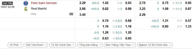 Bảng Tỷ lệ kèo bóng đá Paris Saint-Germain vs Real Madrid
