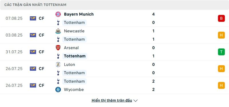Thành tích đối đầu của Paris Saint-Germain vs Tottenham Hotspur