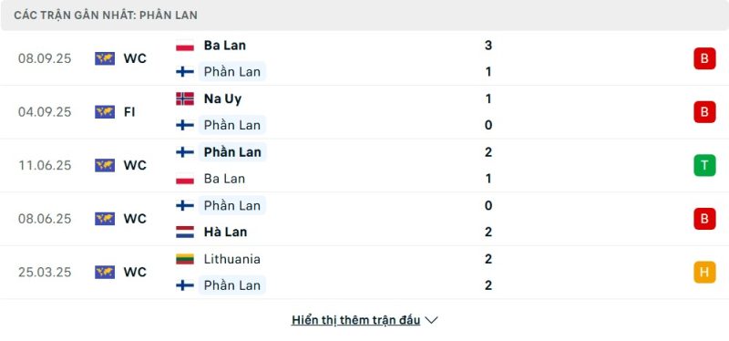 Thống kê phong độ gần đây Phần Lan vs Lithuania