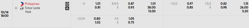 Bảng Tỷ lệ kèo bóng đá Philippines vs Timor-Leste
