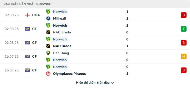 Bên kia chiến tuyến, Norwich City chưa cho thấy sự ổn định. Họ hòa liên tiếp trước Volendam và Zulte Waregem ở loạt giao hữu, rồi để thua Olympiacos 0-3 và NAC Breda 0-1. Mặc dù có chiến thắng 2-0 trước chính NAC Breda, Norwich lại khởi đầu Championship bằng thất bại 1-2 trên sân nhà trước Millwall. Lối chơi thiếu gắn kết và hàng phòng ngự sơ hở đang là vấn đề lớn, đặc biệt khi gặp các đối thủ biết cách pressing và tận dụng khoảng trống.
