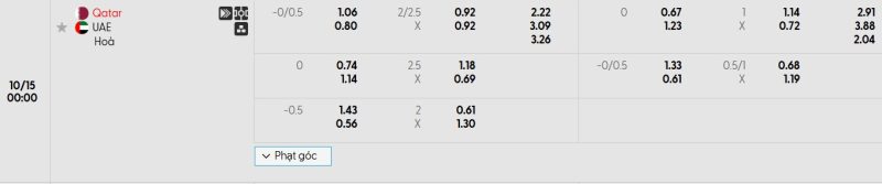 Bảng Tỷ lệ kèo bóng đá Qatar vs UAE