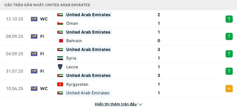 5 trận gần nhất của UAE: W-W-W-W-D