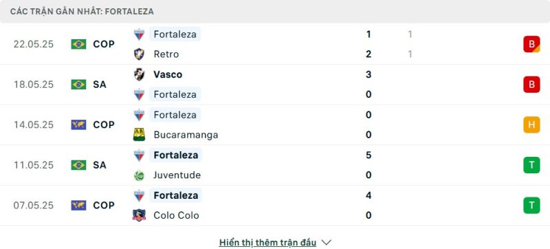 - Phong độ của Fortaleza